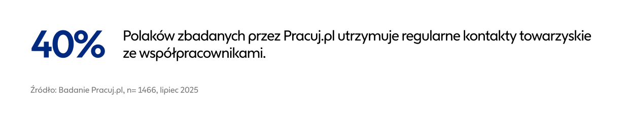 - 40% Polaków utrzymuje regularne kontakty towarzyskie z osobami z pracy